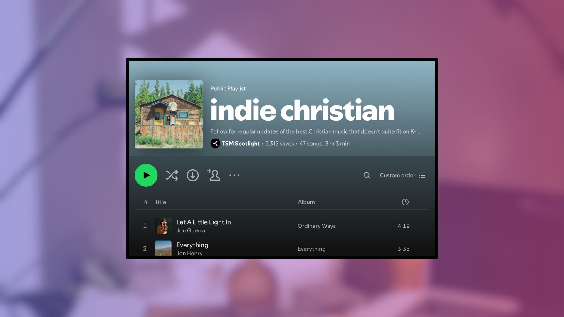 - Short genre/vibe callout (“Do you like Christian folk music? Here’s a playlist for you.”)